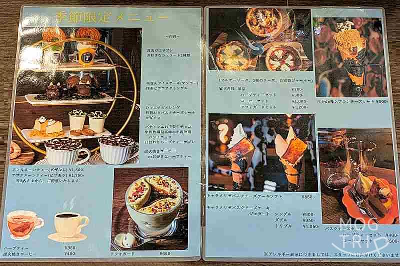 また冬季限定で登場する〝季節限定メニュー〟にも注目です。2025年冬には〝ピザ・バスチー・アフォガード〟などが登場しましたが、特におすすめなのが「アフタヌーンティー」。〝ピザあり or ピザなし〟から選べ、2人分からの提供となります。おどろくべきはその価格で、完全にバグってるとしか言いようがないくらいリーズナブル過ぎて衝撃的でした…!